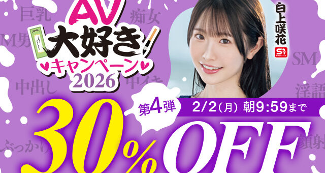 0 FANZA / キャンペーン 2026年1月31日 AV大好きキャンペーン2026 人気動画作品30%OFFキャンペーン第4弾!※PR 第4弾:2026/01/30(金) 10:00~2026/02/02...