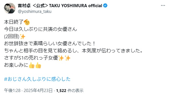 インスタライブで、吉村卓とはしばらく共演してないと言われていました。
