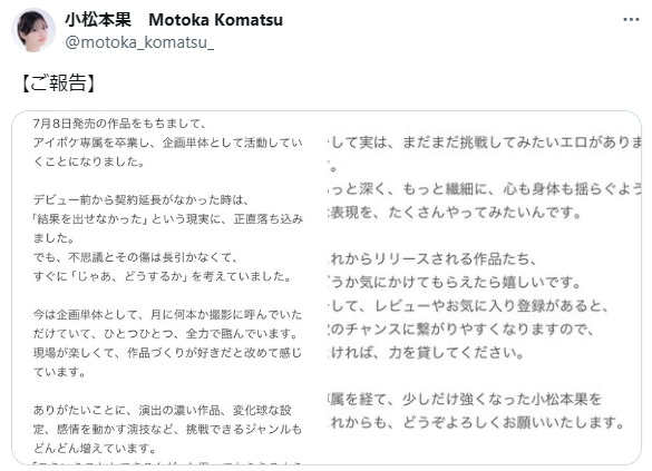 小松本果さん アイデアポケット専属から企画単体女優へ ※PR