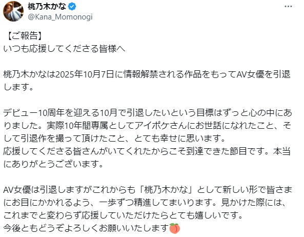 10年分の感謝を込めて。。。これが「桃乃木かな」ラストVR!!最後の優しいディープキス!最後の口内射精!甘淫語でメロメロ!ラストスパイダー騎乗位!!桃乃木かなとのSEX体感ラスト作品!!「チンポ勃たせちゃってw最期だからたくさん出してねw」この接近・リアル・距離感もこれが最後!!「桃乃木かな」AV終幕。最後のVR!もう見れない!最後の絶頂!永久保存版を体感せよ!!