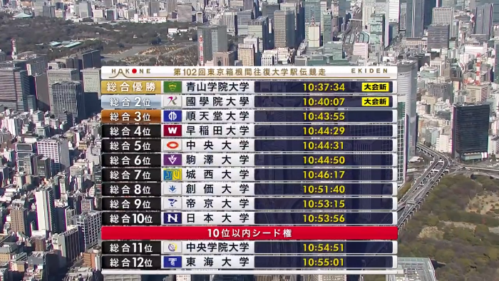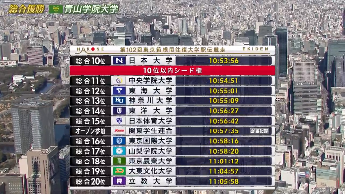 帝京大学は、よくシード権が取れたね。
