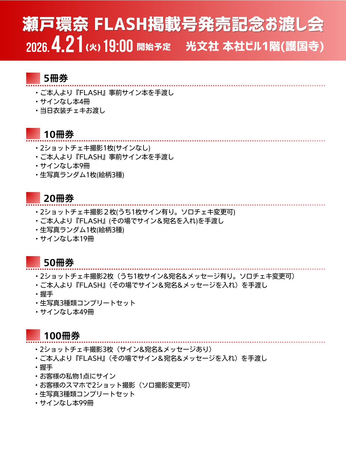 FLASHの裏表紙にセトカンの情報(4月21日発売号表紙)が出ていましたね うれしい