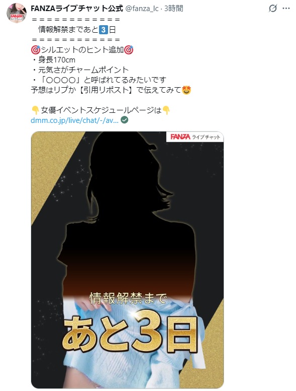 あの「超人気」AV女優が生配信!! 情報解禁まであと3日