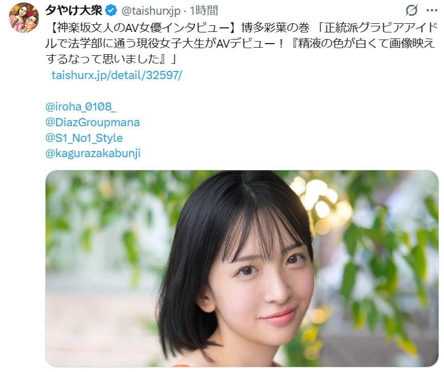 【神楽坂文人のAV女優インタビュー】博多彩葉の巻 「正統派グラビアアイドルで法学部に通う現役女子大生がAVデビュー!『精液の色が白くて画像映えするなって思いました』」 ※PR