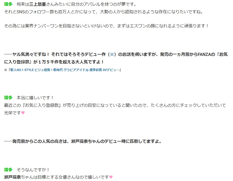 週刊誌のグラビアがバズったのがキッカケでAV転身! エスワン新人・博多彩葉ちゃんインタビュー(前編)